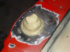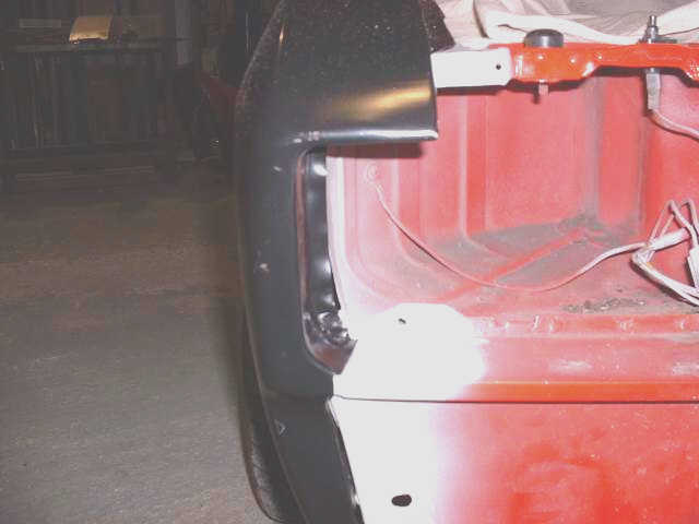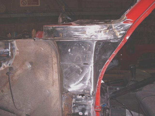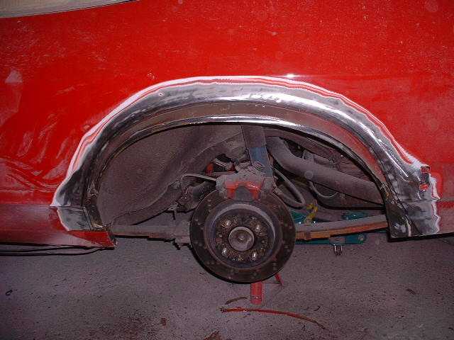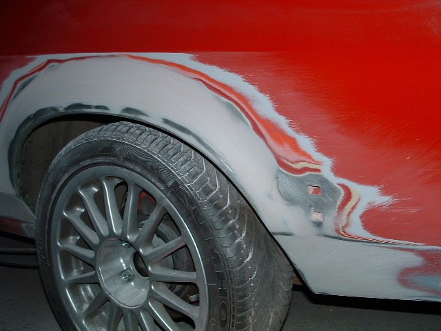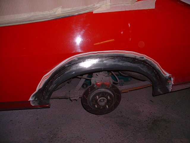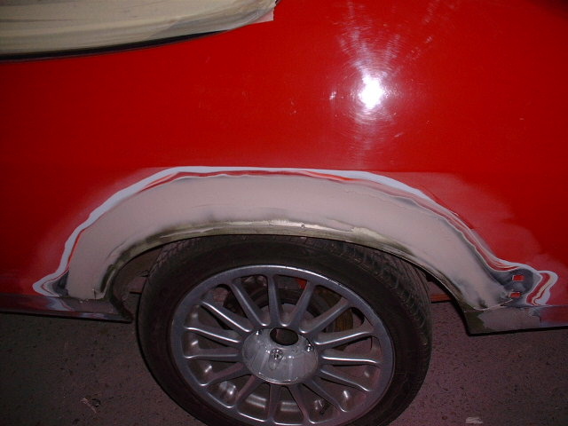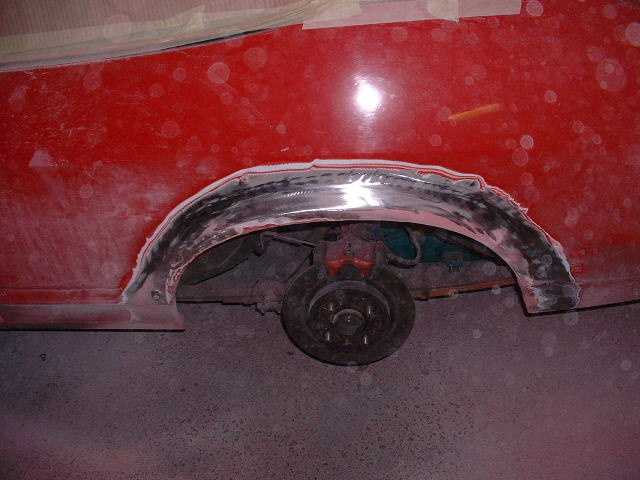 Wheel arch after a skim of filler has been added Arch starting to take shape again