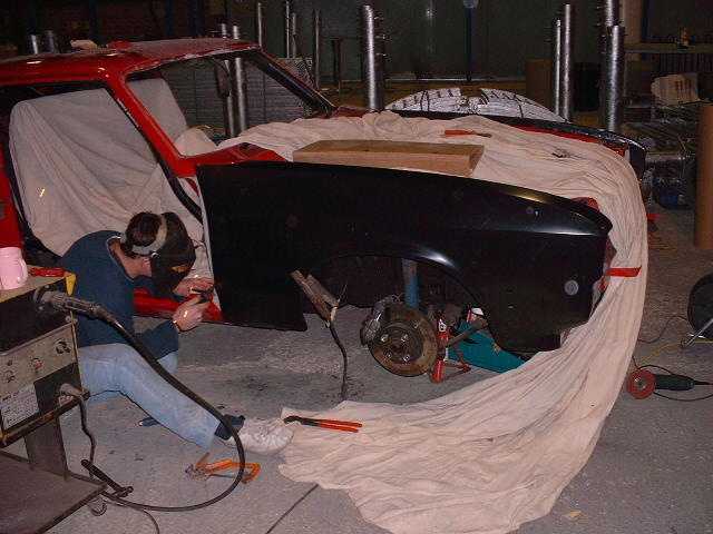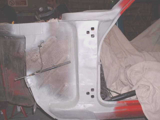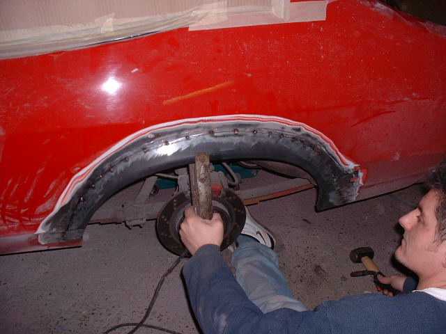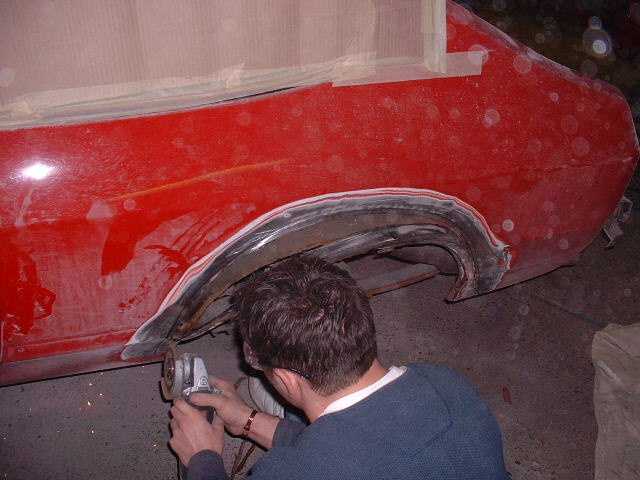A view of the rusty rear arch (the paint has been removed to see how far back it was rotten) Aston busy removing the outer arch skin,
