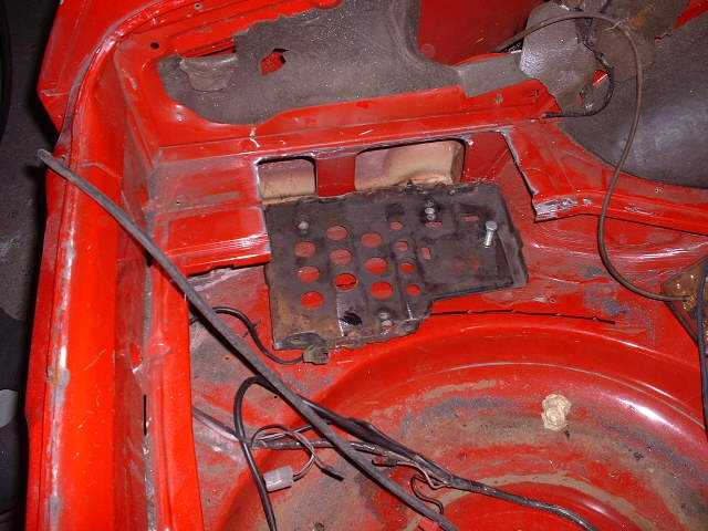 The battery tray has been removed, due to the battery being boot mounted, the double layer of metal where battery tray fixes had corroded so we removed the affecting metal work and have replaced with new