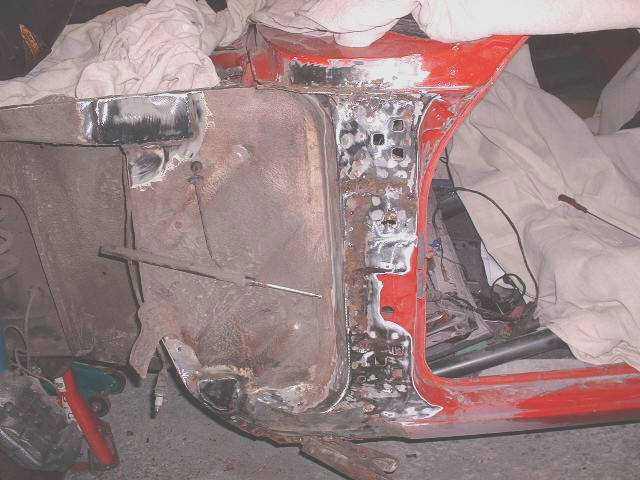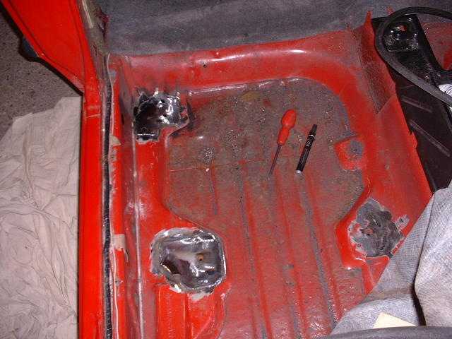 Passengers floor area needed some TLC, arond seat fixing points and where the roll cage bolted to the floor, Same as for drivers side.