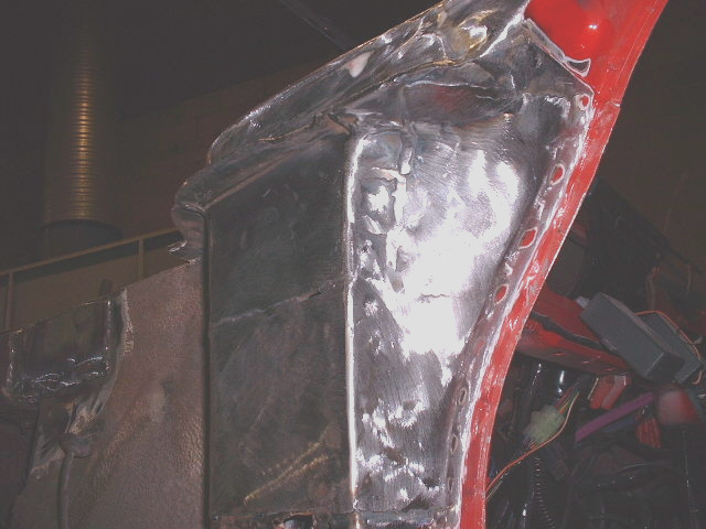 The rusted A post metal has been replaced with the same gauge steel to regain it's original strength.