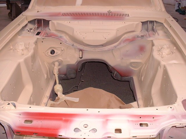 The front scuttle taking shape now after metal work has been replaced The drivers side after 3 coats of Stone Chip and 3 coats of Wax Underseal, I don't think Ford went to this extent of rust prevention.