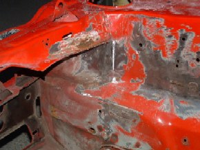 The wing rail near bulk head had rotted away, the drivers A pillar had suffered the well know Ford tin worm, and the headlight bowl also suffered from tin worm,