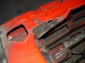 The screen slam panel has already been repaired, this is when we found out the reason why the A post had rusted so bad, the drain hole fron the screen lets water run down a small channel to the engine bay, mine had a small rust hole in thus letting water down into the A post area