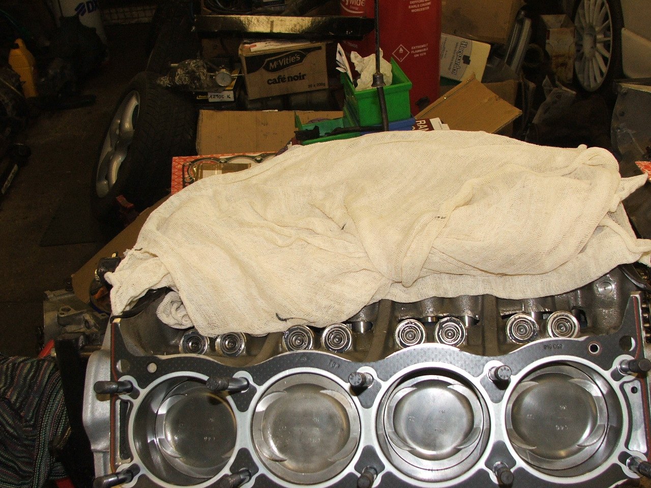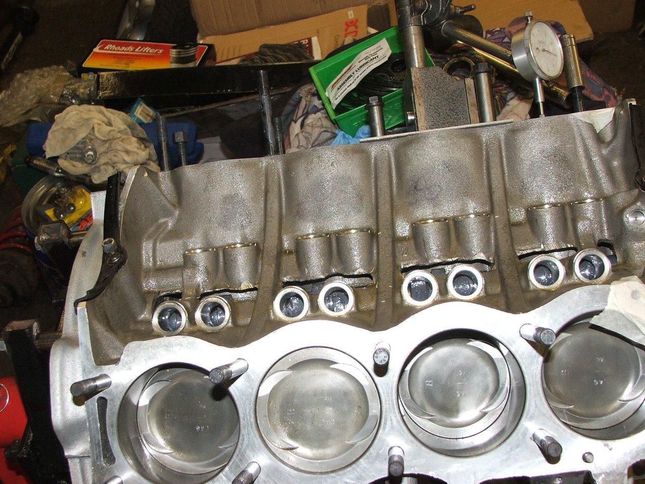 comp pistons fitted to new engine (est around 11:1 static comp ratio) |