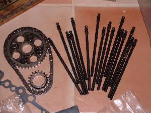 The list of parts so far, Composite Inlet Gasket Chrome Moly Adjustable Push Rods, Composite Timing Cover Gasket Crane Hi-Rev Hydraulic Lifters Steel Vernier Adjustable Timing Gears,